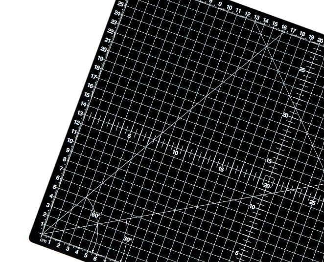 Easy to read measurements in white with 30, 45, 60 and 90 degree angles lines.