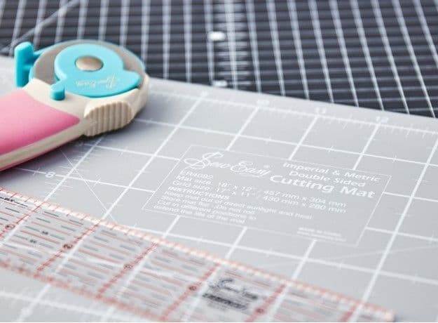 Double-sided, bi-coloured cutting mat. 3mm thick with self-healing, non-slip surface.